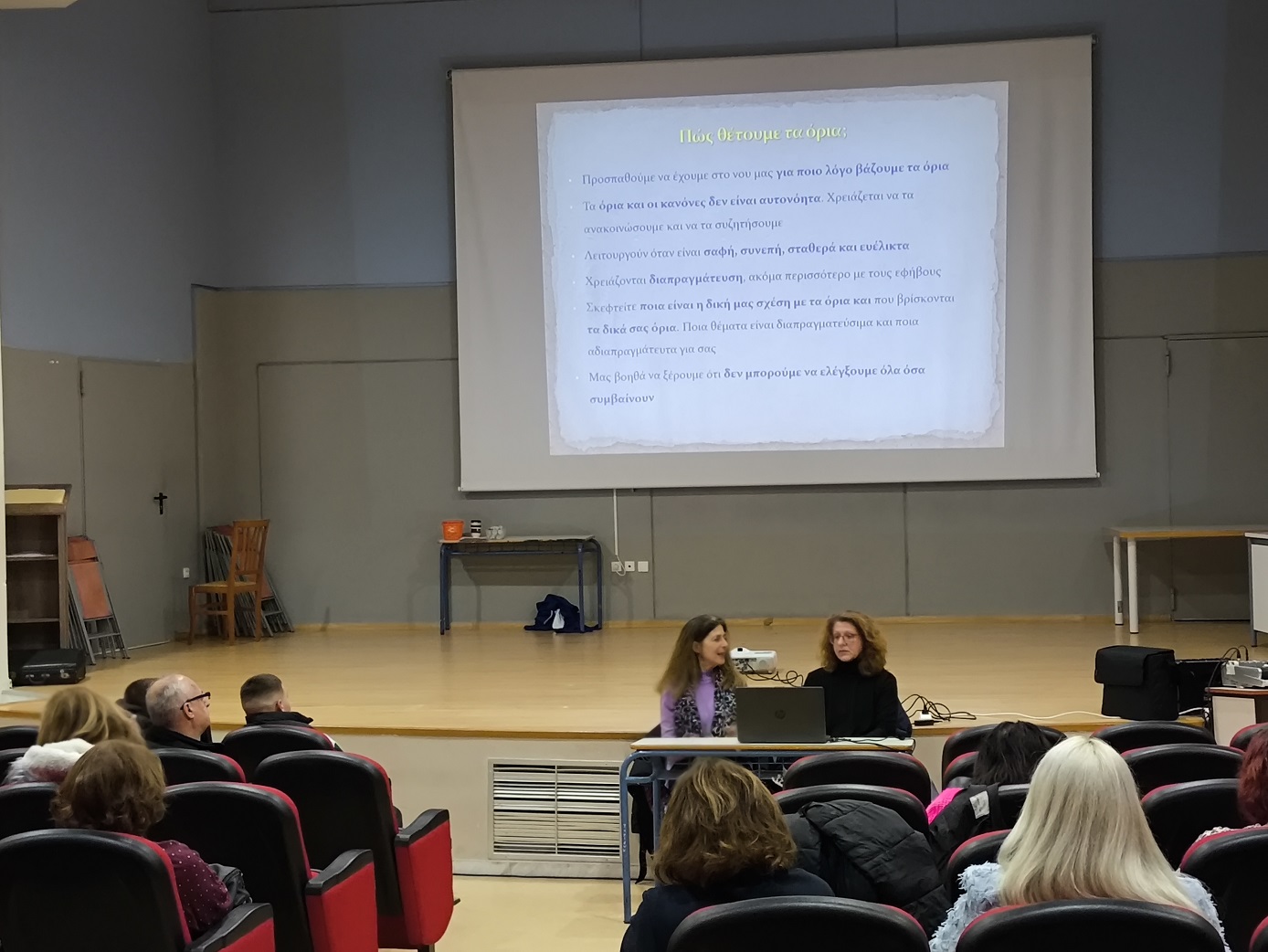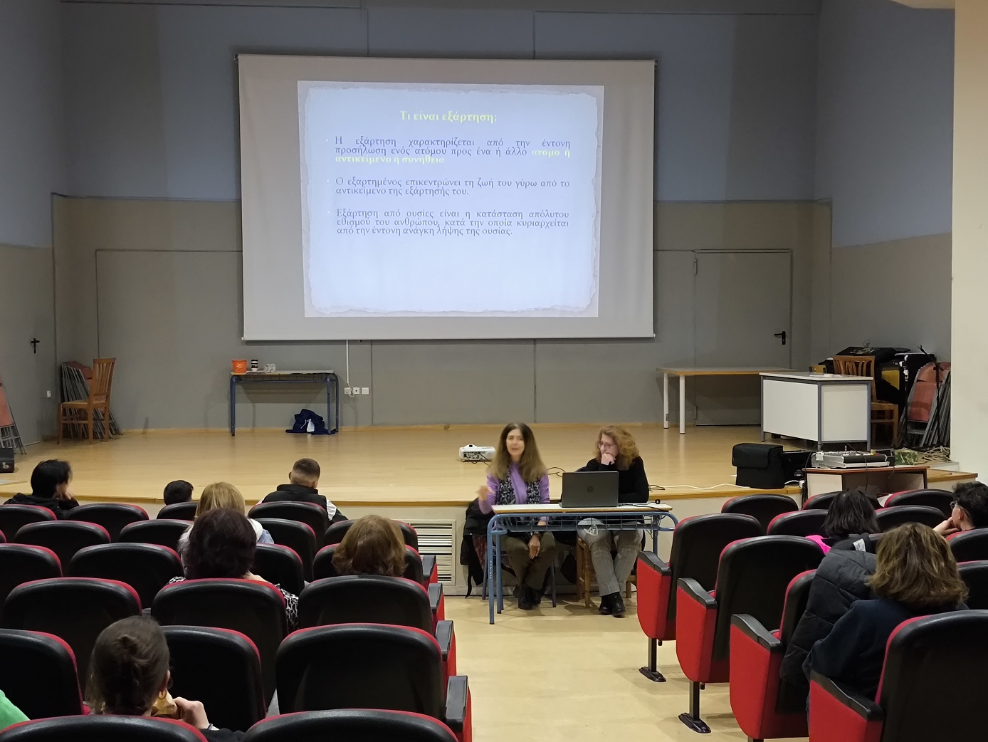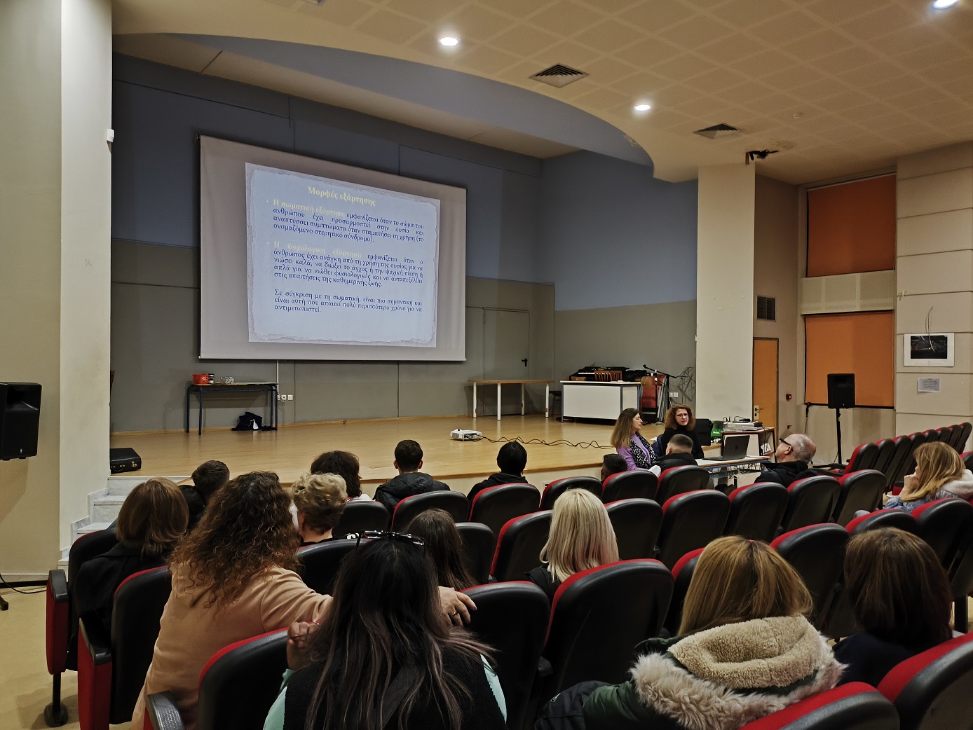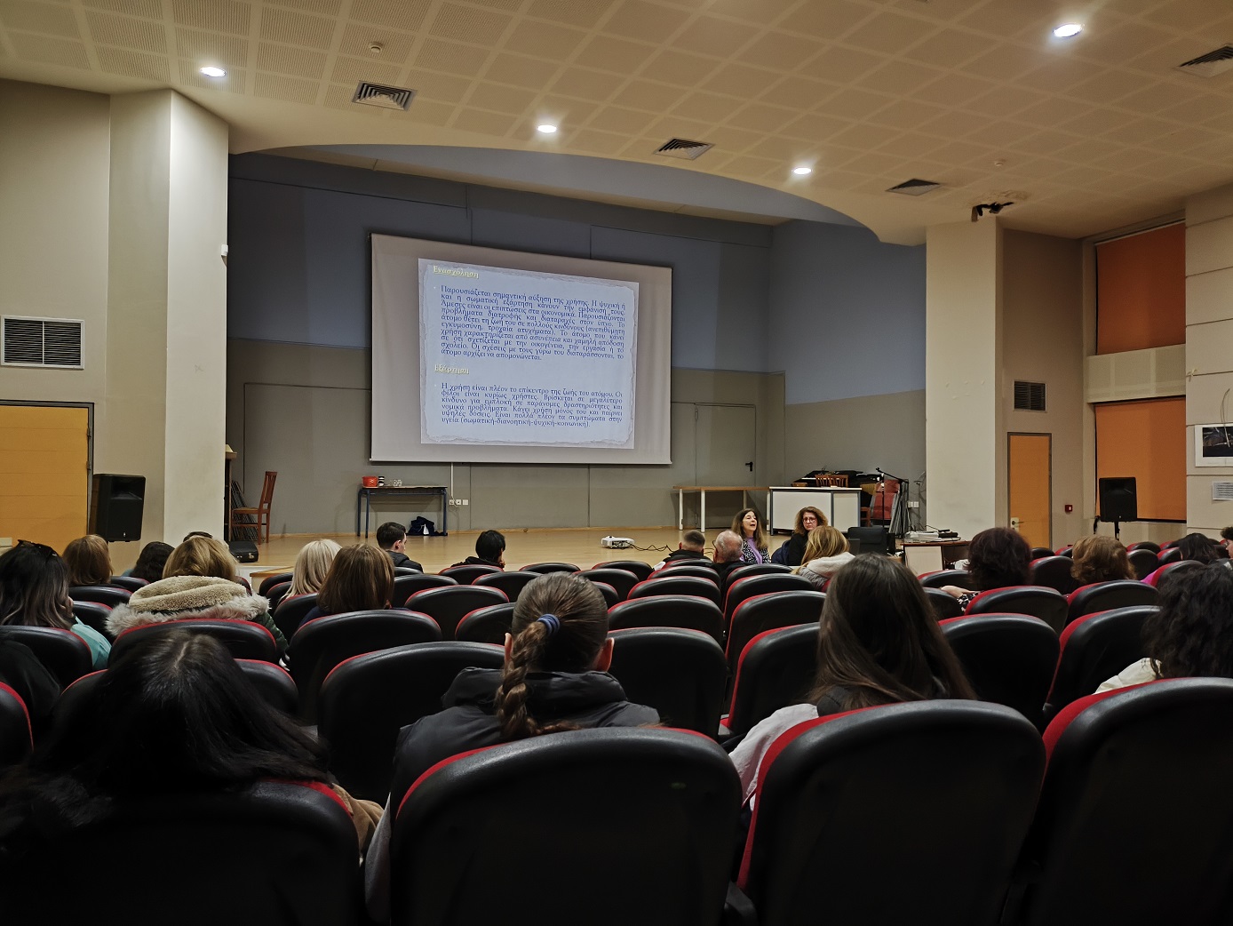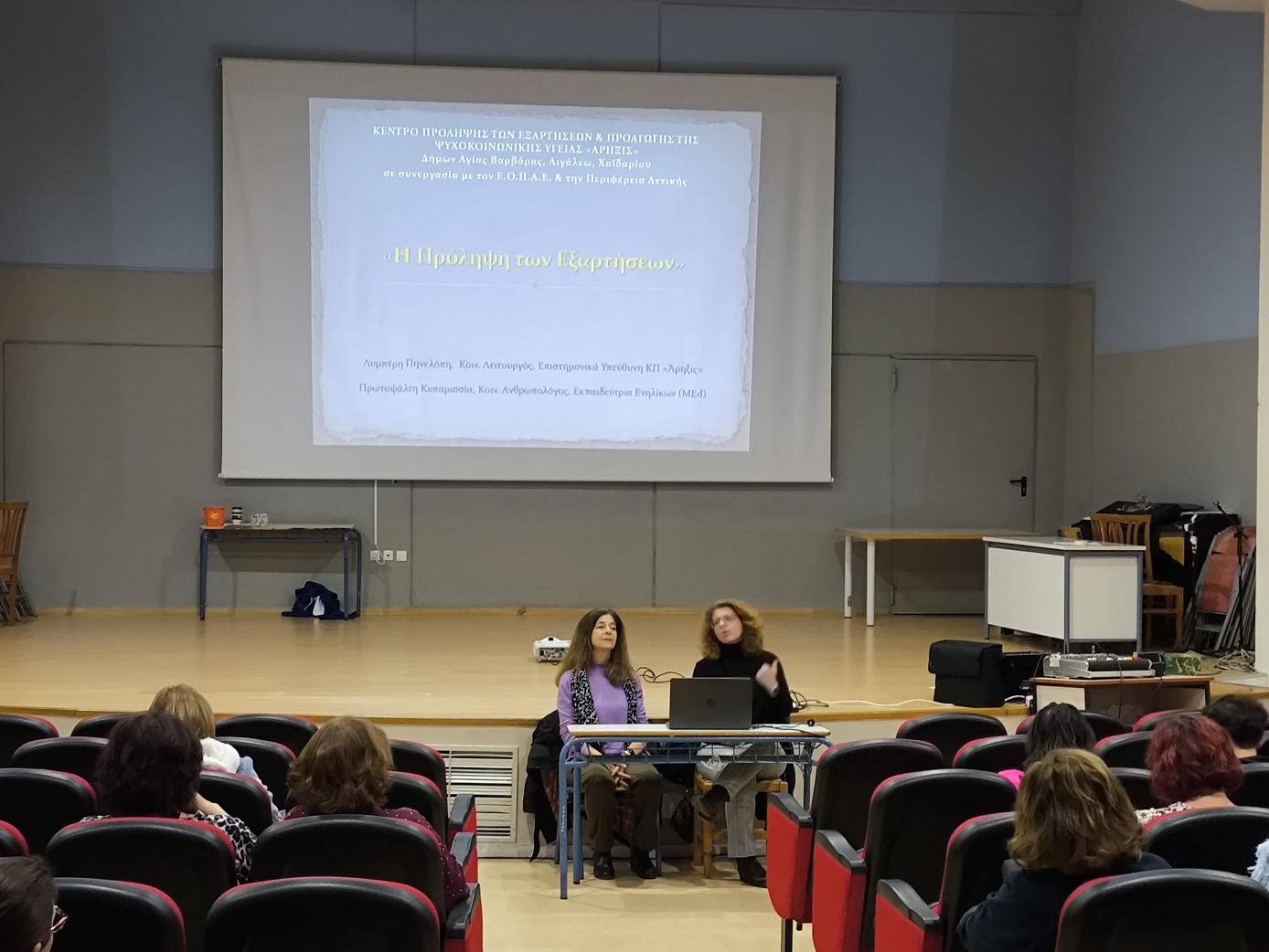 Η εν λόγω ενημέρωση εντάσσεται στο πλαίσιο της προσπάθειας του σχολείου μας που αποσκοπεί στην πρόληψη των εξαρτήσεων και την προαγωγή της ψυχοκοινωνικής υγείας των εφήβων. Όλοι παρακολουθήσαμε με ενδιαφέρον τις εισηγήτριες, ενώ ακολούθησε συζήτηση και διάδραση για τα θέματα που αναδείχθηκαν.