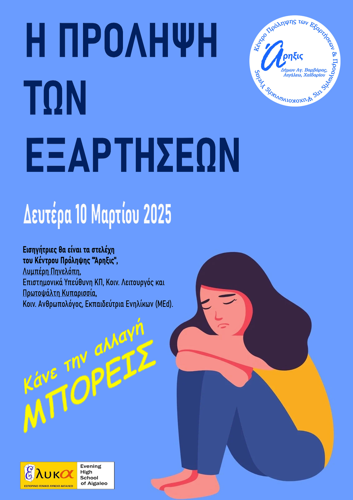Την Δευτέρα 10 Μαρτίου 2025 υλοποιήθηκε ενημέρωση των μαθητών/τριών και των καθηγητών/τριών του σχολείου μας από το Κέντρο Πρόληψης των Εξαρτήσεων & Προαγωγής της Ψυχοκοινωνικής Υγείας “Άρηξις” ενημέρωση με θέμα «Η πρόληψη των εξαρτήσεων». Η ενημέρωση έγινε από την κ. Λυμπέρη Πηνελόπη, Επιστημονικά Υπεύθυνη ΚΠ, Κοιν. Λειτουργός και την κ. Πρωτοψάλτη Κυπαρισσία, Κοιν. Ανθρωπολόγος, Εκπαιδεύτρια Ενηλίκων (MΕd).