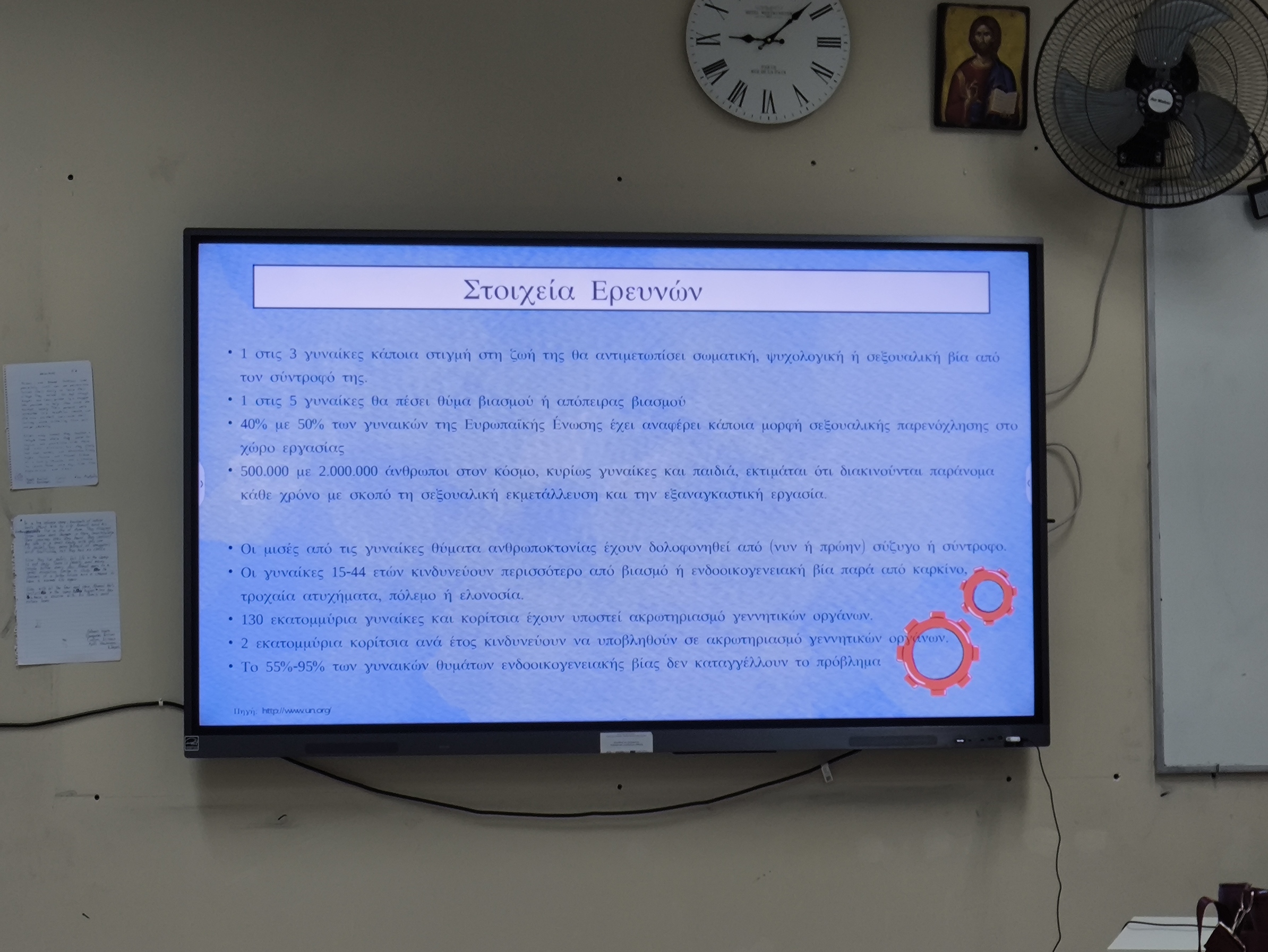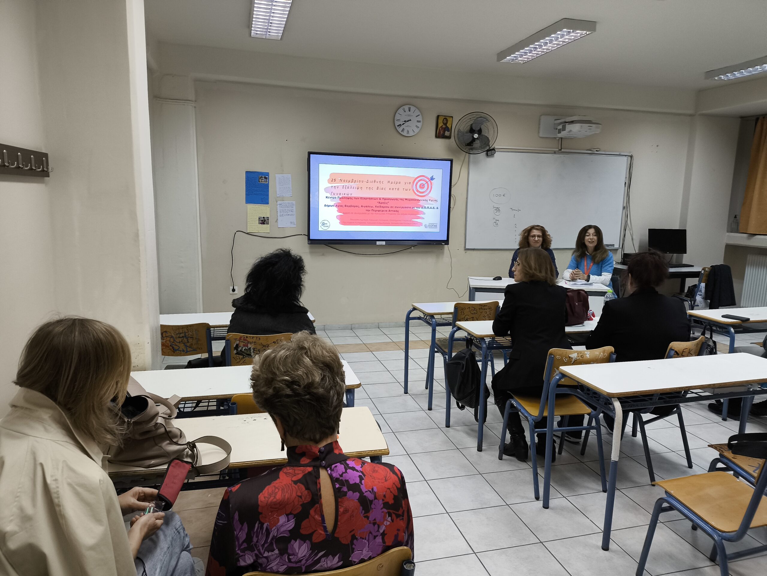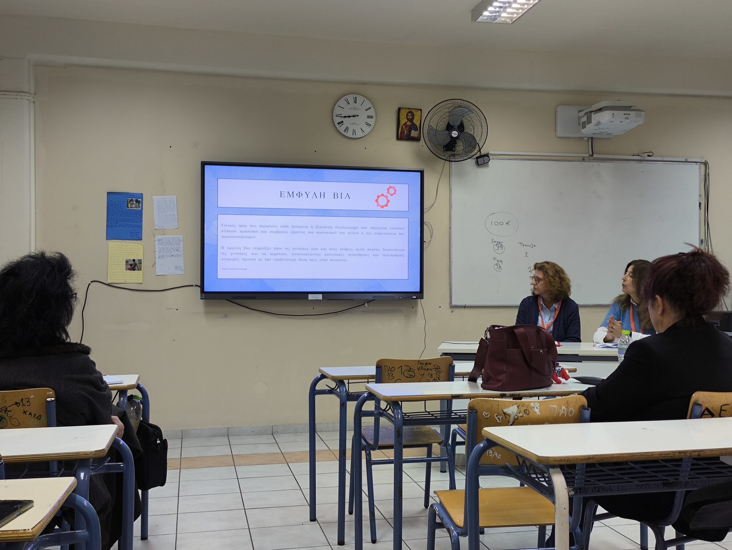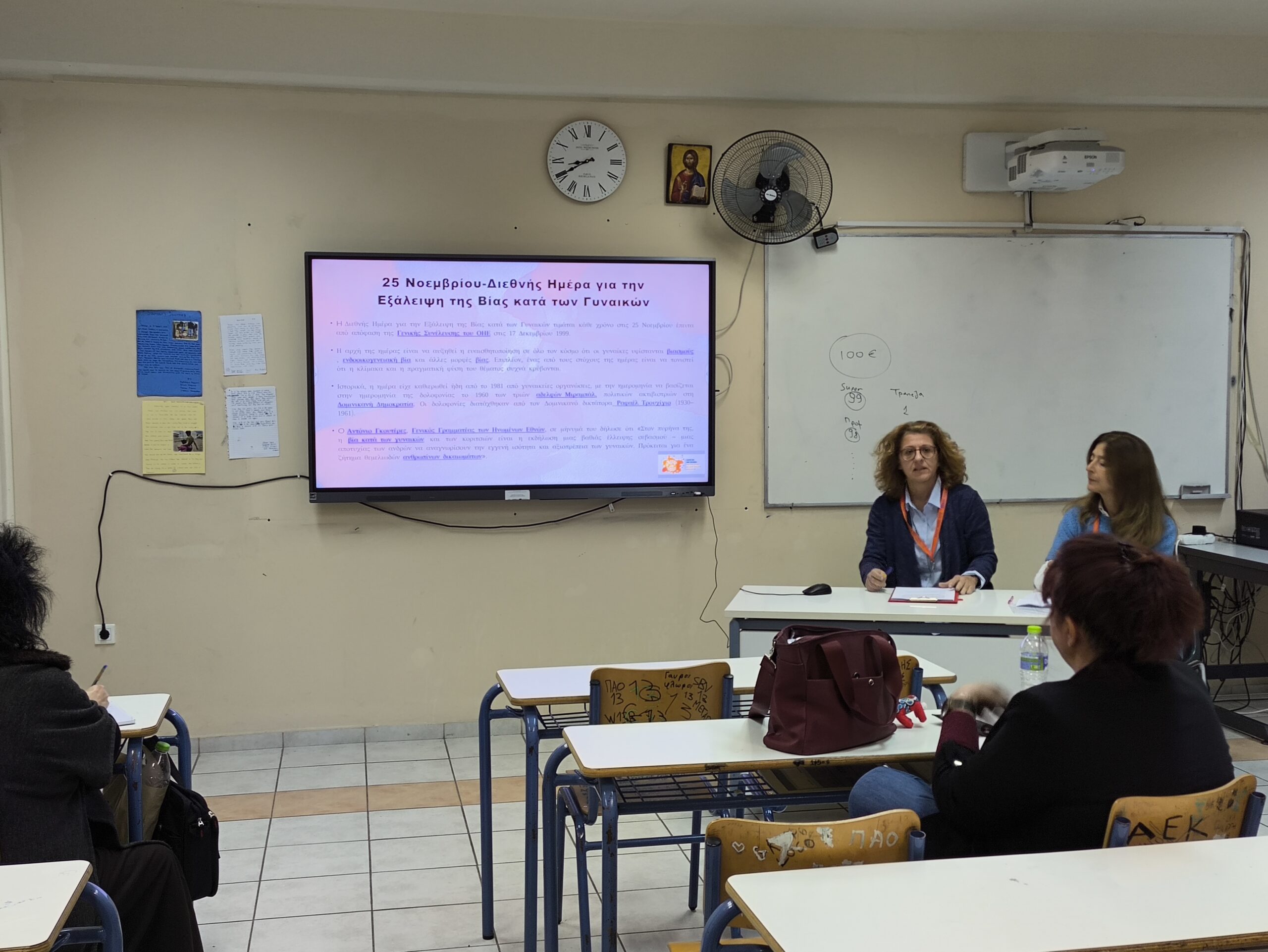 Το σχολείο μας πραγματοποιήσε 3ωρο σεμινάριο ενημέρωσης και ευαισθητοποίησης στους καθηγητές/τριές του με θέμα «Ημέρα για την εξάλειψη της Βίας κατά των Γυναικών» στις 13-11-2025 σύμφωνα με τον αρ. πράξης 23 / 07-11-2025 του Συλλόγου Διδασκόντων (αφού έλαβε υπόψη του το ΦΕΚ 136α/Άρθρο 87/2021 και όπως τροποποιήθηκε με το άρθρο 73/Νόμος 5128/2024).