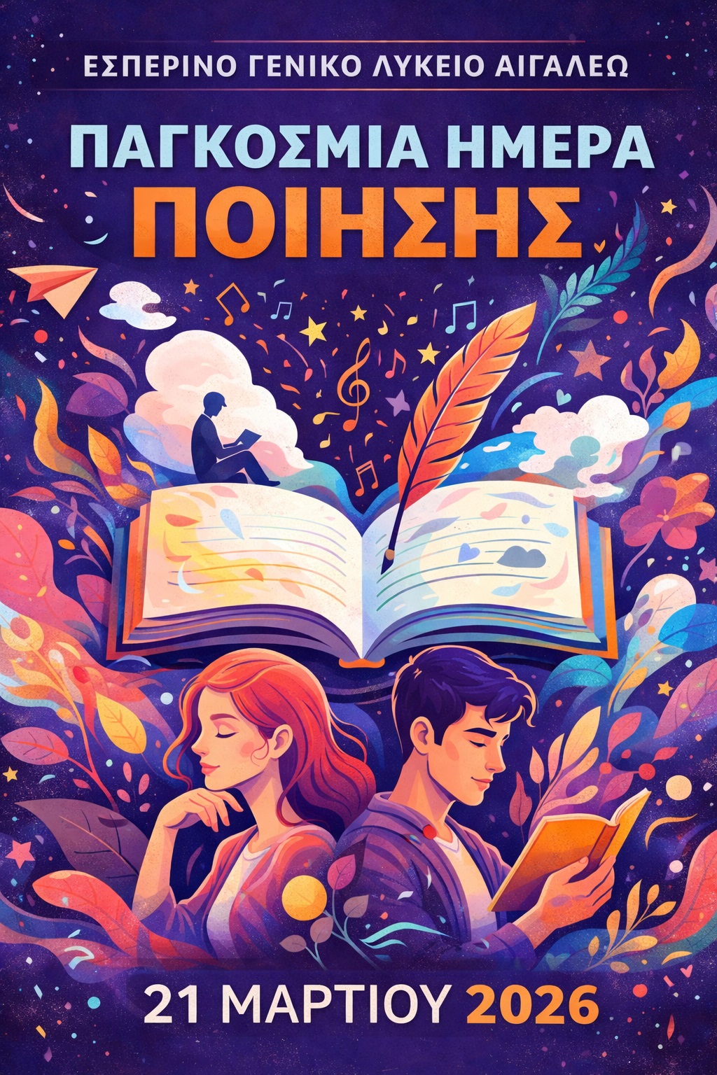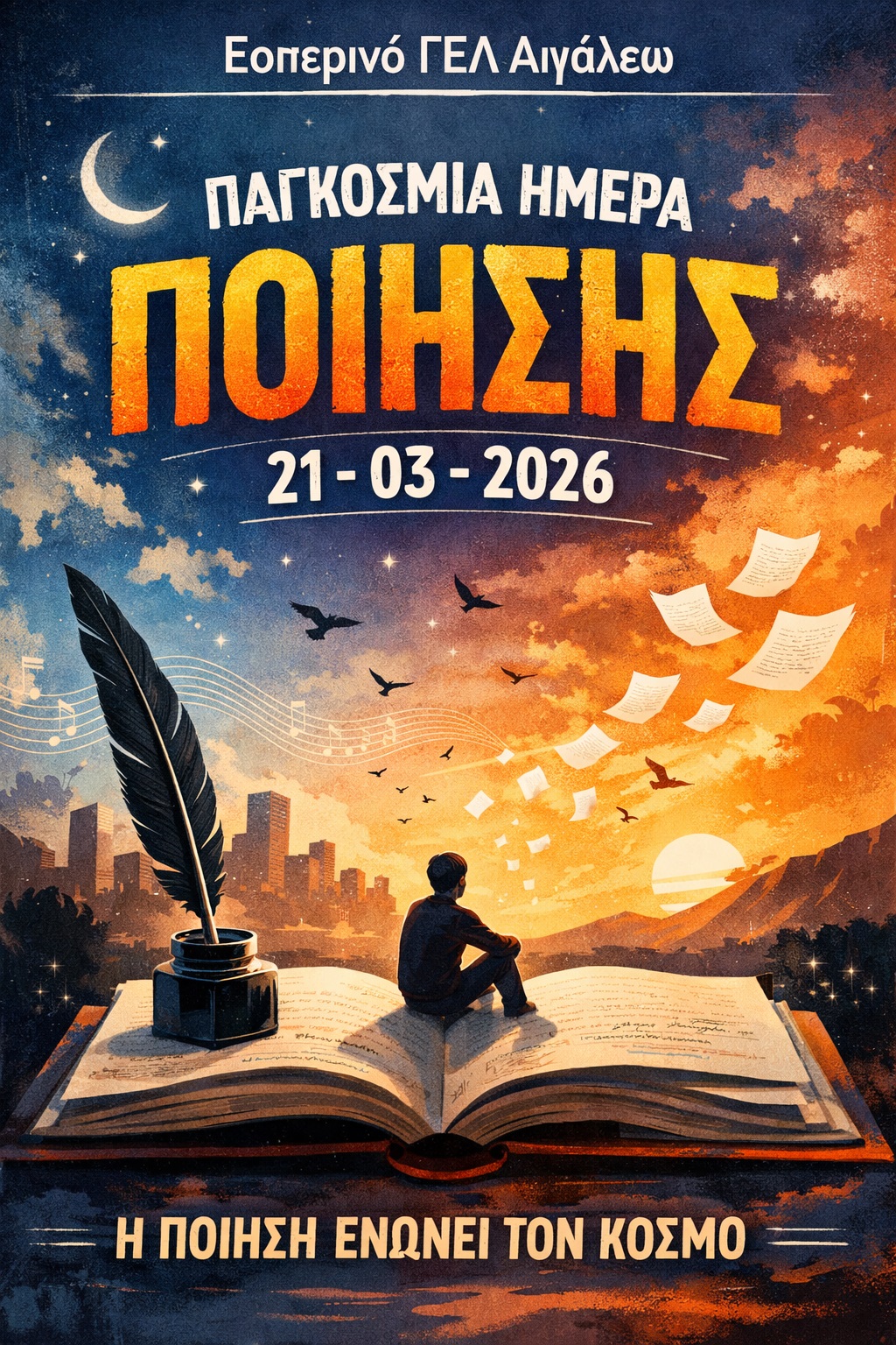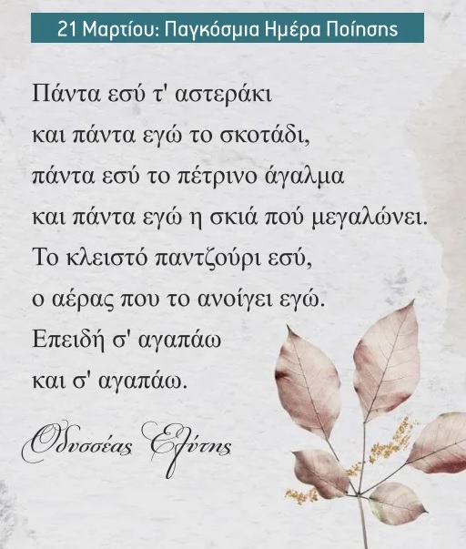 Έτσι και εμείς δημιουργήσαμε μαζί με τους μαθητές/τριες αφίσες με αφορμή την ημέρα, αναζητήσαμε 21 μελοποιημένα ποιήματα από 21 Έλληνες ποιητές και φτιάξαμε 21 σημεία ανάγνωσης. Μάθαμε για τα Νόμπελ της ελληνικής ποίησης (Σεφέρης – Ελύτης).