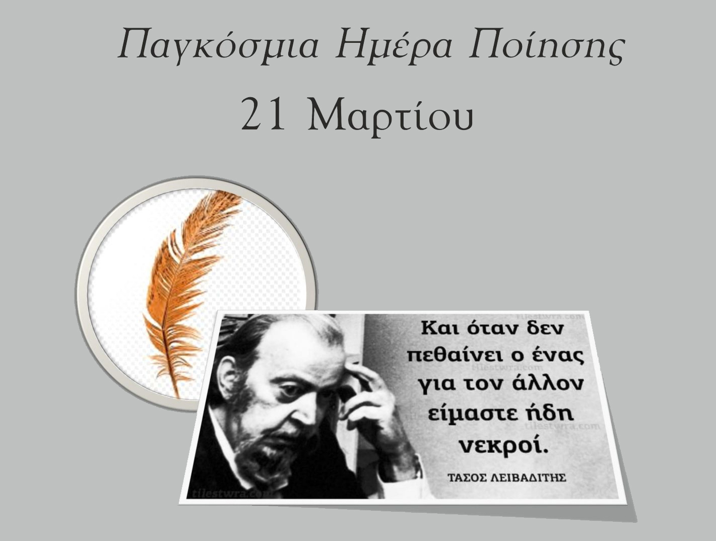 Η Παγκόσμια Ημέρα Ποίησης εορτάζεται κάθε χρόνο στις 21 Μαρτίου. Η αρχική έμπνευσή της ανήκει στον Έλληνα ποιητή Μιχαήλ Μήτρα. Την ίδια ημέρα της εαρινής ισημερίας, που συνδυάζει το φως από τη μία και το σκοτάδι από την άλλη, όπως η ποίηση που είναι τρόπος έκφρασης του ψυχισμού του ανθρώπου. Ο εορτασμός αποτέλεσε αφορμή για την ενίσχυση των δεσμών της ποίησης με τις άλλες τέχνες και την ενίσχυση της φιλαναγνωσίας των μαθητών, ώστε να επαναπροσδιοριστεί η φράση του Ντελακρουά